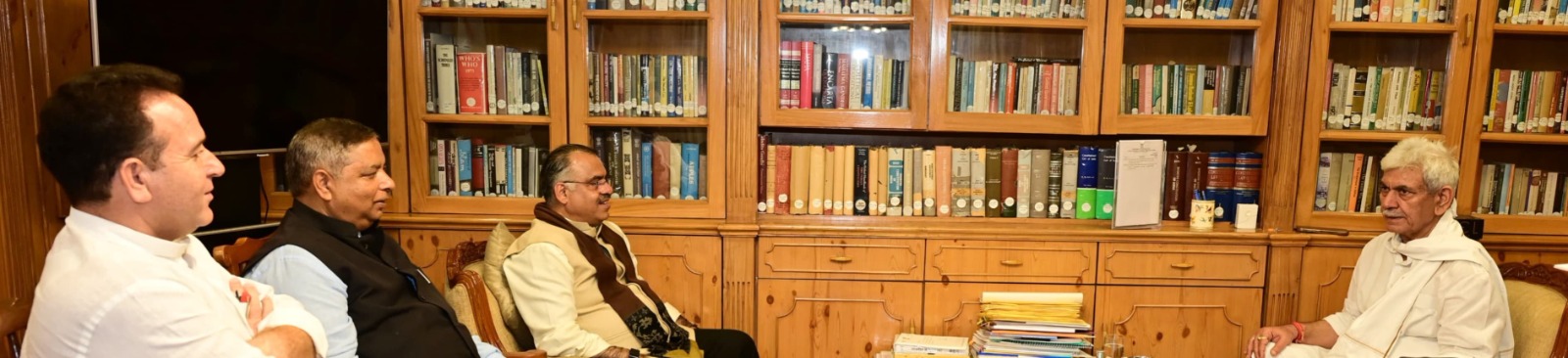 SRINAGAR, JULY 30: Shri Tarun Chugh, National General Secretary, Bharatiya Janata Party (BJP) called on Lieutenant Governor Shri Manoj Sinha, today. He was accompanied by Shri Sunil Sharma, Leader of Opposition (LoP) in J&K Legislative Assembly and Shri Sat Sharma, President, Bharatiya Janata Party (BJP), J&K Union Territory.