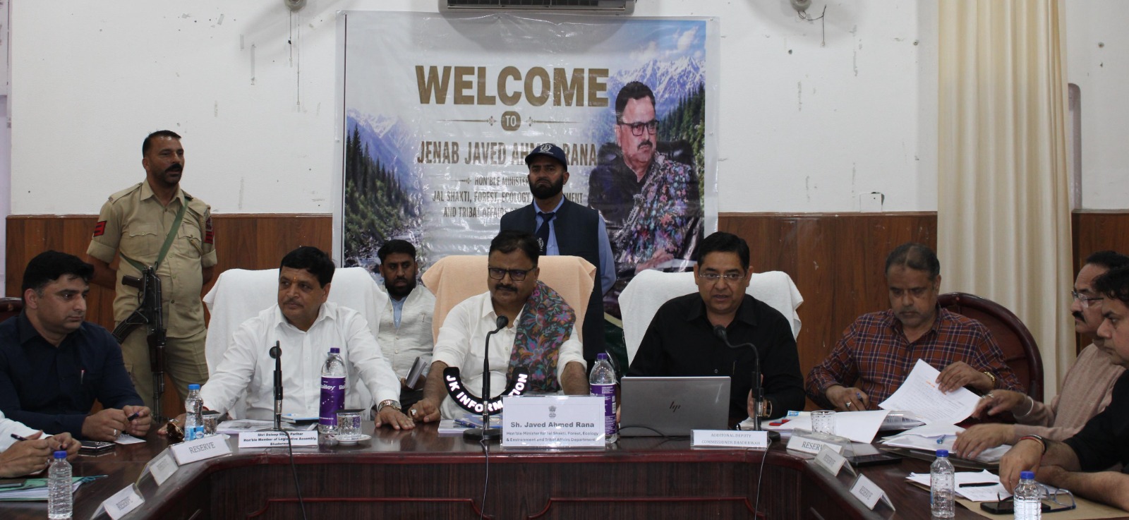 BHADERWAH, APRIL 25: Minister for Jal Shakti, Forest, Ecology & Environment and Tribal Affairs, Javed Ahmed Rana today chaired a comprehensive review meeting at Dak Bungalow, Bhaderwah, to assess the status and progress of ongoing developmental works across departments in the sub-division.