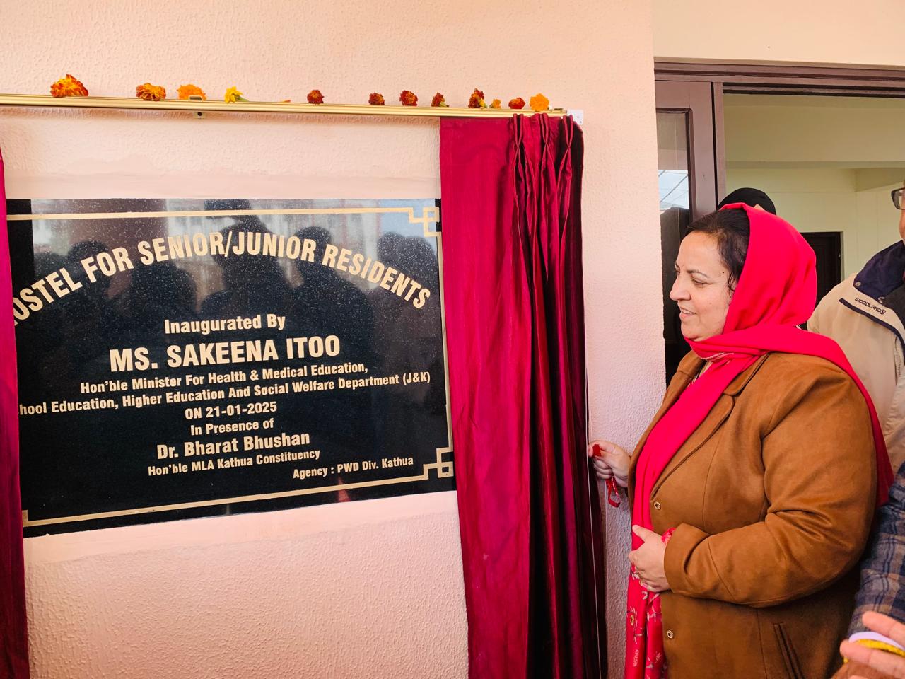 Later, the Minister inaugurated hostel for Senior/Junior Residents of GMC Kathua. She also inaugurated STIC of Fire Fighting system in GMC Kathua.