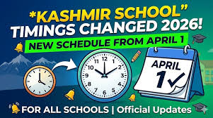 SRINAGAR, MAR 30: The Directorate of School Education Kashmir (DSEK) issued an order revising school timings for all government and recognized private institutions in Kashmir division with effect from April 1.