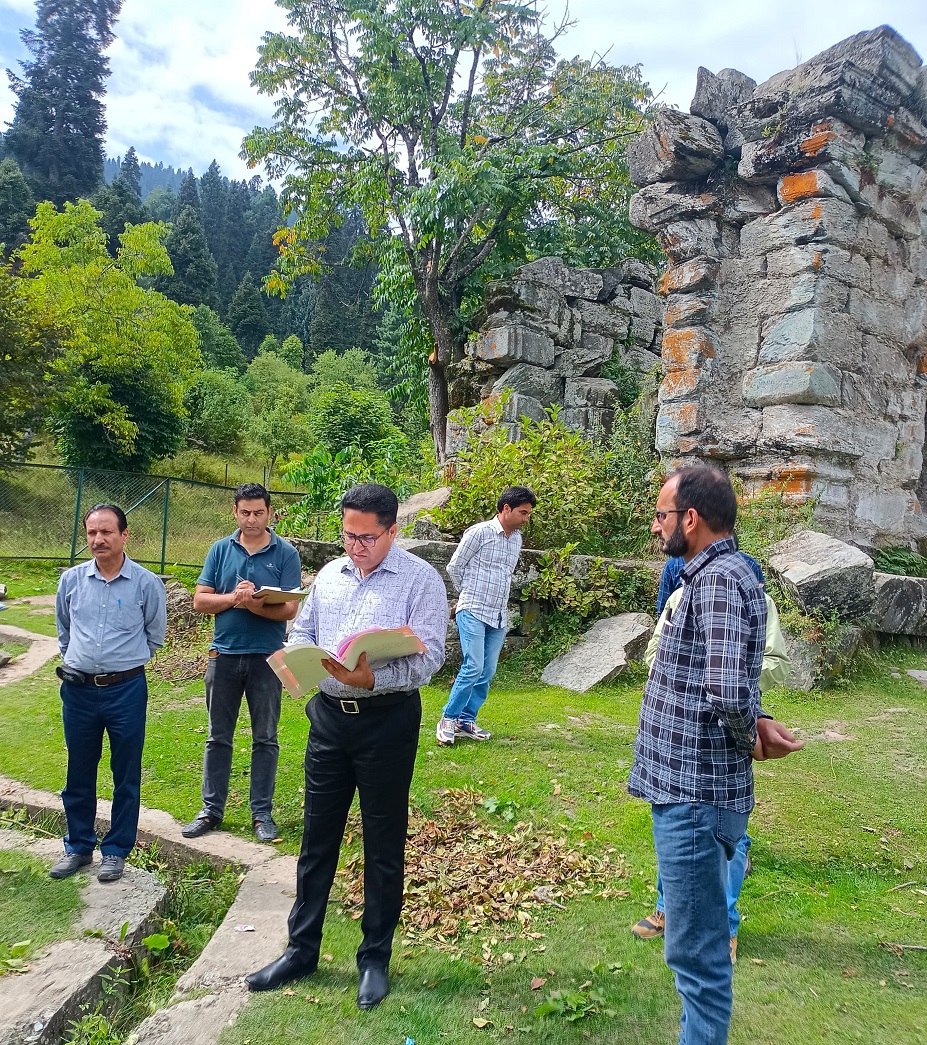 SRINAGAR, SEPTEMBER 14: With an aim to have the first-hand account of the preservation and conservation works being executed by the Department of Archives, Archeology and Museums (AAM), Director, AAM, Kuldeep Krishan Sidha today inspected the ongoing works in Tangmarg and Gulmarg, areas of Baramulla district.