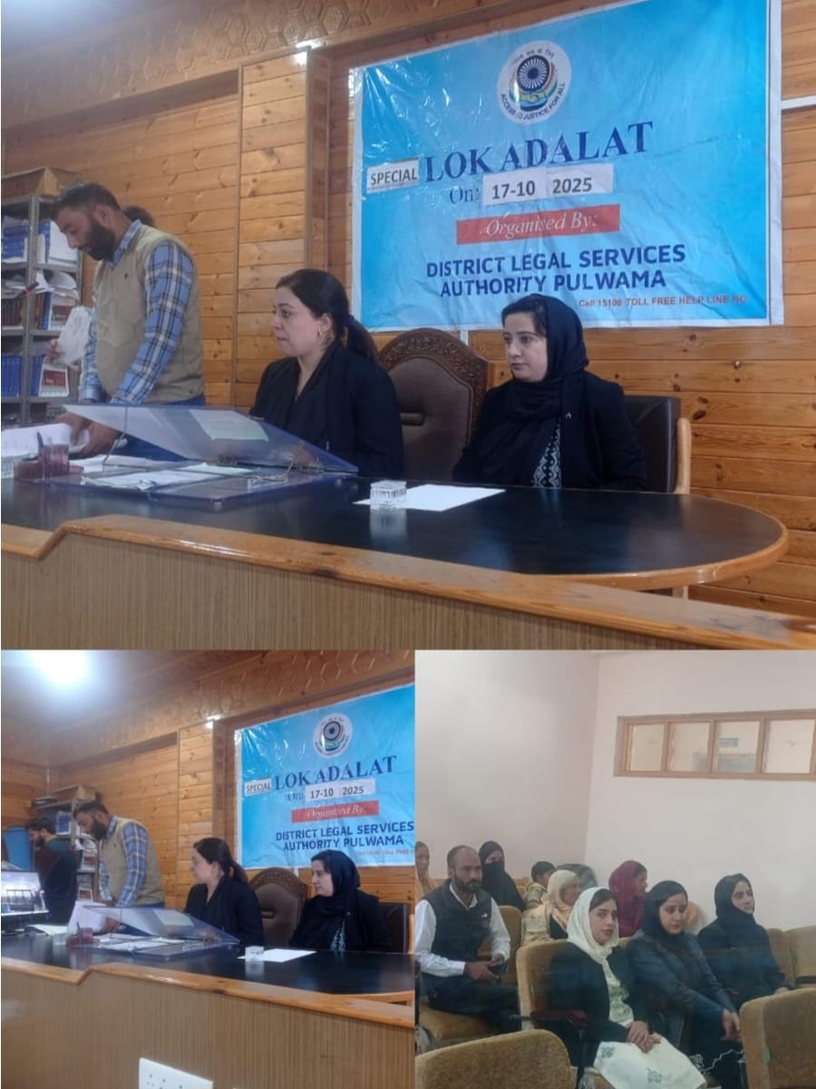 PULWAMA, OCTOBER 17: Special Lok-Adalat for Cheque Bounce cases was organized in District Court Complex & other sub-ordinate courts of District Pulwama under the Chairmanship of Chairman District Legal Services Authority (Pr.District & Sessions Judge), Pulwama, Malik Shabir Ahmad and under the supervision of Secretary DLSA Pulwama, Mudasar Farooq.