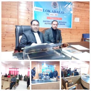 At Srinagar, the District Legal Services Authority (DLSA) Srinagar, organized a Special Lok Adalat at the District Court Complex, Mominabad, Srinagar.