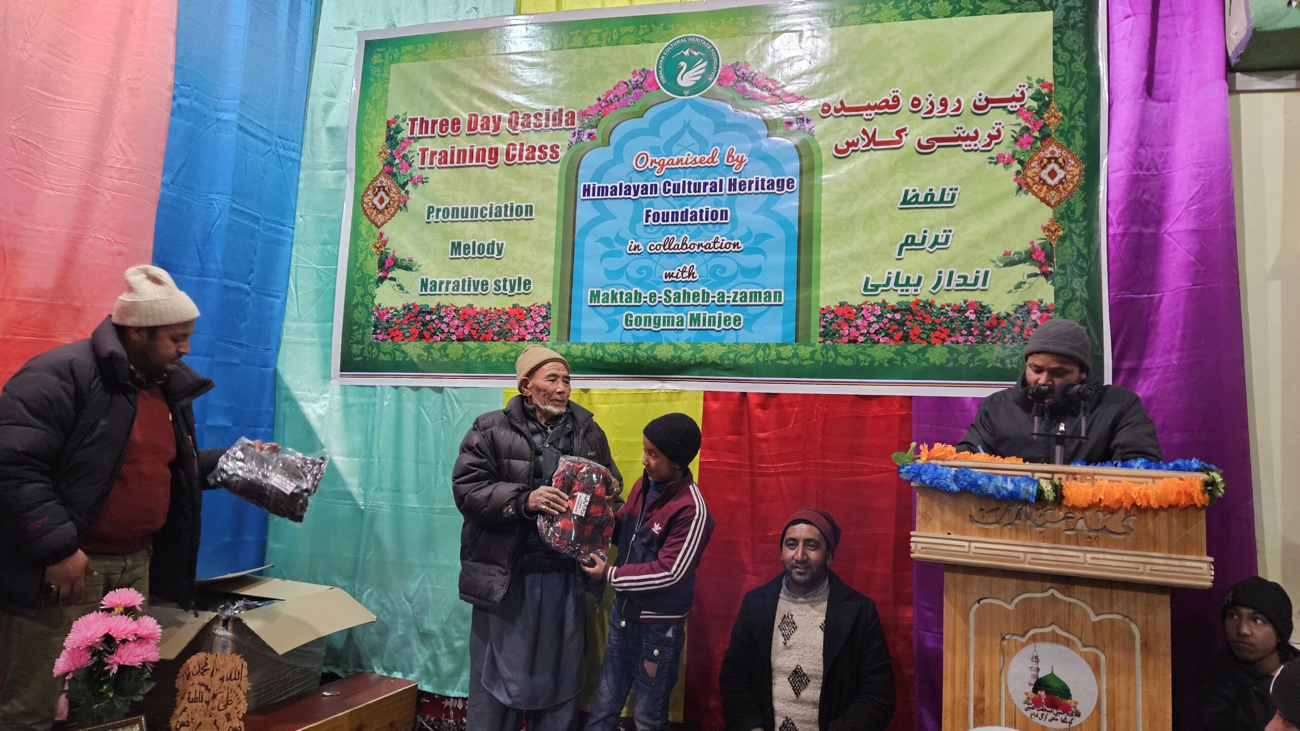 The Three Days Qasida Training Class, organized by the Himalayan Cultural Heritage Foundation in collaboration with Maktab e Sahab Zaman Gonma Minjee and supported by Stringmo Group of the Young Artist of Kargil, concluded on a high note at Imam Bargha Goma Minjee.