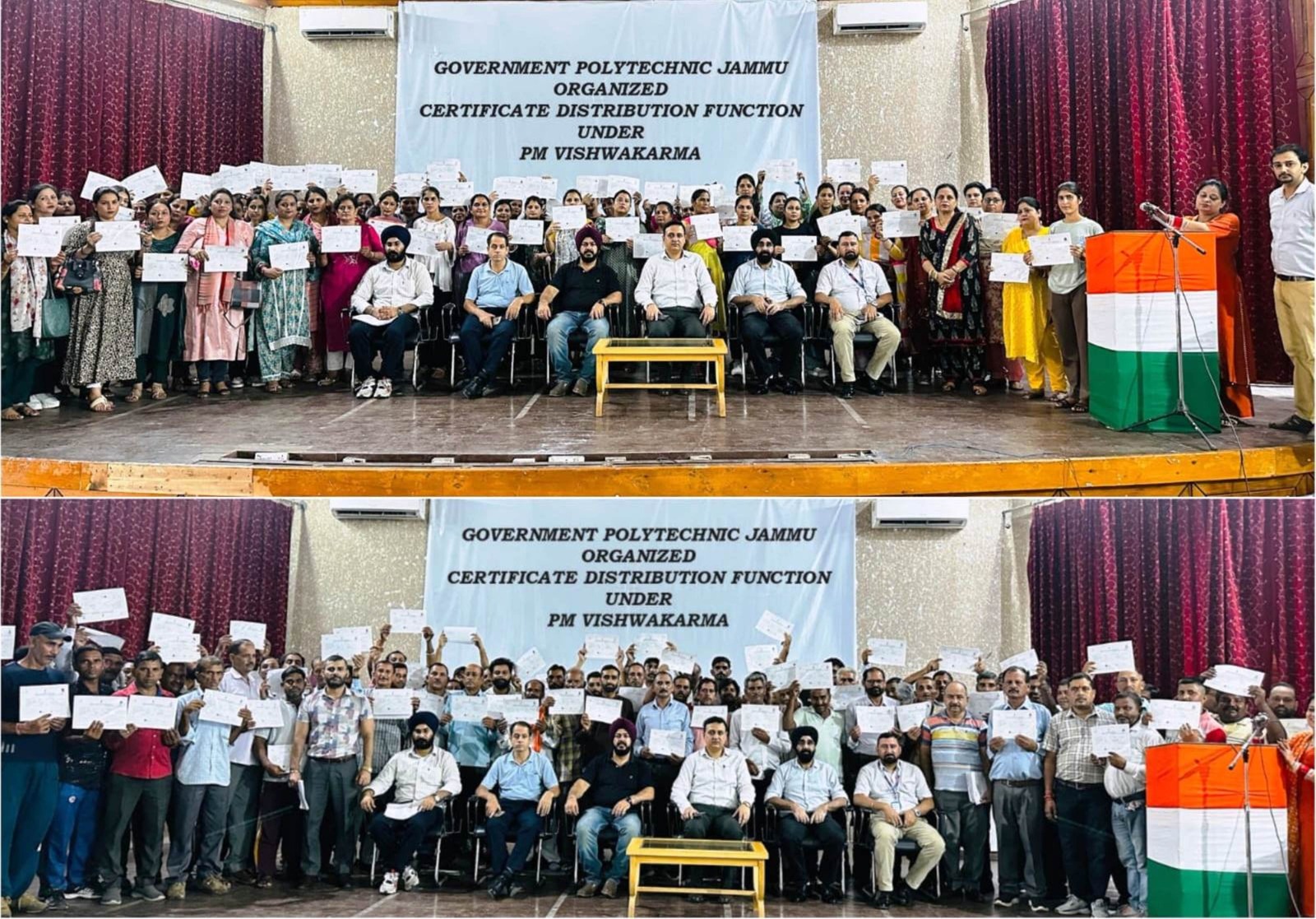 JAMMU, JULY 30: Government Polytechnic Bikram Chowk Jammu today organised Certificate Distribution Function under PM Vishwakarma Scheme in which certificates were distributed to 248 trainees in Fifteen Batches of Assistant Barber-Salon Services, Carpenter (Suthar), Blacksmith (Lohar), Brick Masson-Basic (Rajmistri) Trade/Job Role, on the successful completion of the Basic Skilling Training under PM Vishwakarma Scheme.