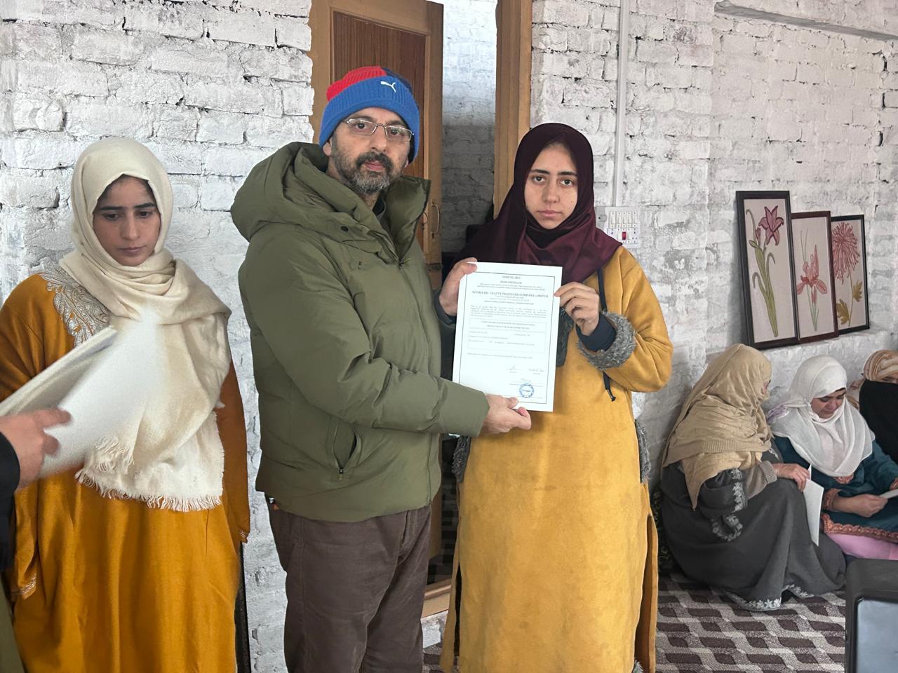 SRINAGAR, JANUARY 17: In a significant step towards empowering women artisans in Jammu and Kashmir, Mussarat Islam, Director Handicrafts and Handloom, Kashmir (DHHK), distributed Share Certificates to women owners of Noor Aari Crafts Producer Company in the Noorbagh area of Srinagar.