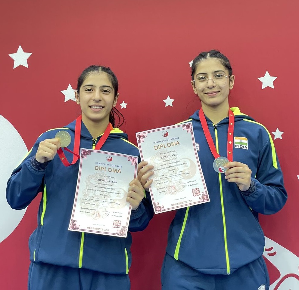 SRINAGAR, MARCH 03: Wushu Sisters,  Ansa Chishti and Ayeera Chishti Great brought laurels to  India, especially Jammu & Kashmir  by clinching Gold medals in Russian Moscow stars Wushu International Championship going on in Moscow from 28 February until 5th March 2024.